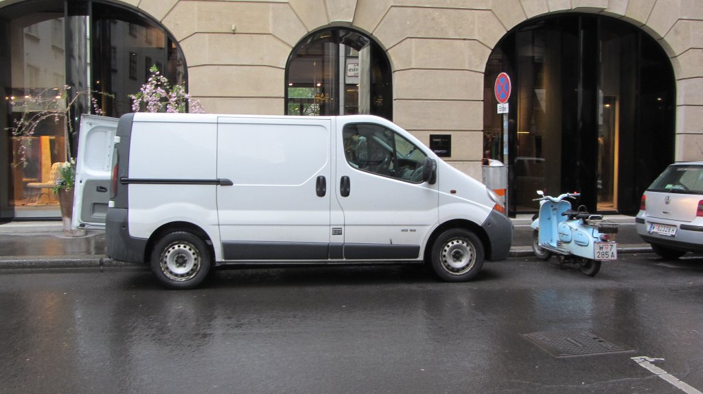 Opel Vivaro parkt am 7.4.2012 vor einem Geschäft in Wien und wird gerade entladen.