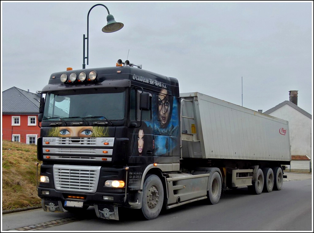 DAF-Hängerzug am 02.März 2012 am Straßenrand in Bergen/Rügen.