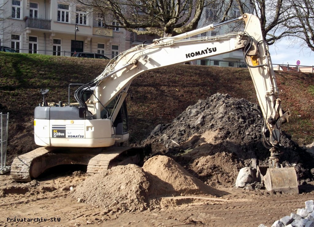 Komatsu PC 228US LC #Draufsicht; Bauarbeiten in den Wallanlagen, Rostock 4.3.2012