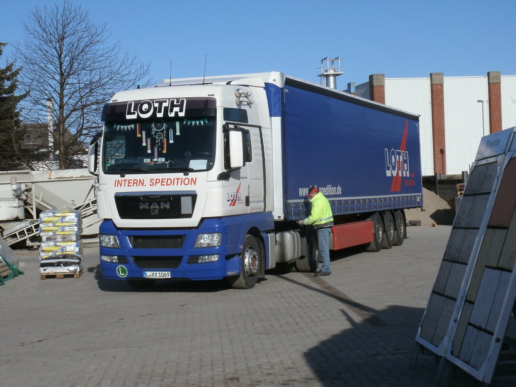 MAN-Sattelzug,am 02.März 2012,bei einem Baustoffhandel in Bergen/Rügen.