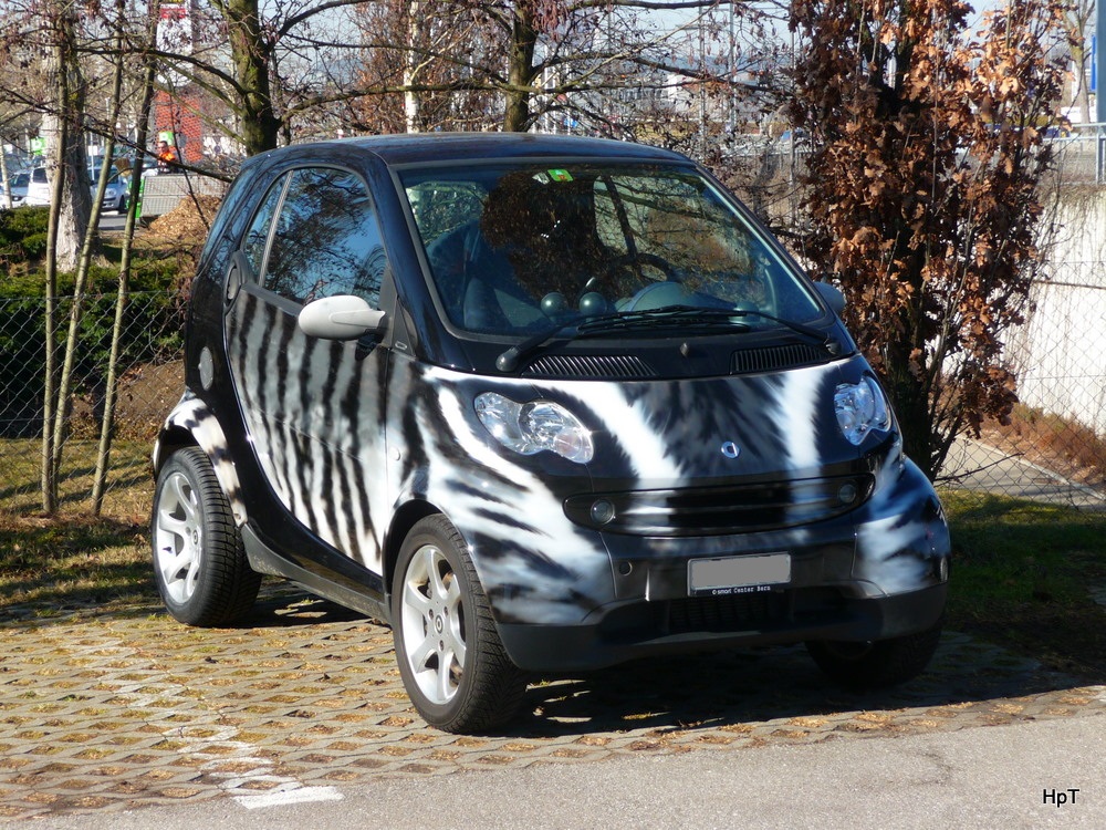 Smart mit Zebrastreifen abgestellt in Schönbühl beim Smartcenter am 02.03.2012