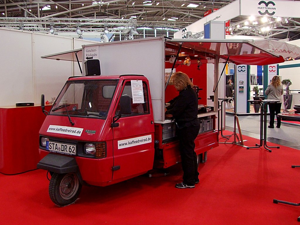 APE als mietbares Kaffeedreirad, anlässlich der Transport-Logistic-Messe in München;110513