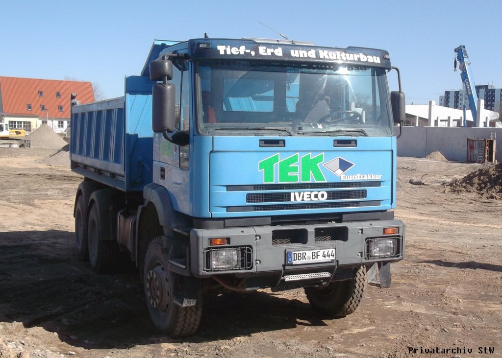 Iveco EuroTrakker (DBR BF444)der Firma ''TEK'', Baustelle für das neue ''Kaufland '' in der Erich-Schlesinger Straße, Rostock, 22.3.2012