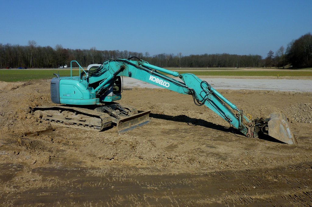 KOBELCO SK 210 NLC (Raupenbagger) bereitet den Untergrund für eine Lagerhalle; 120316