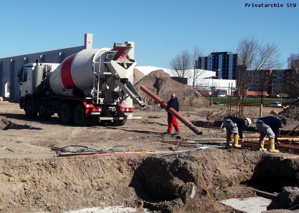 MB Betonmischer mit Liebherr-Aufbau (LDS CT 146), Baustelle für das neue ''Kaufland '' in der Erich-Schlesinger Straße, Rostock 22.3.2012