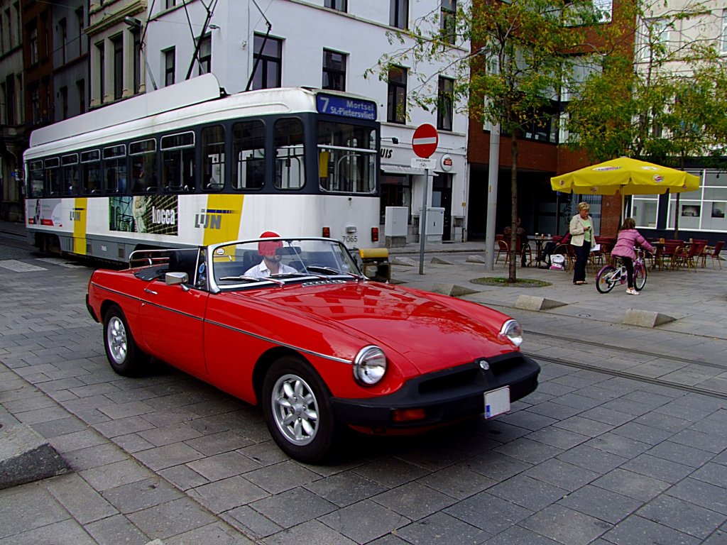 MG-B braust durch die Innenstadt von Antwerpen; 110831