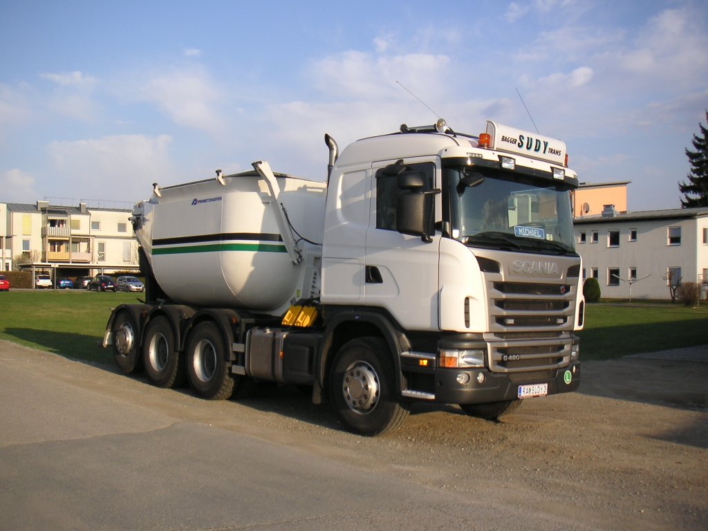 Scania G480 4-Achser Asphaltbirne von Sudy Trans parkte am 23.3.2012 in Leibnitz.