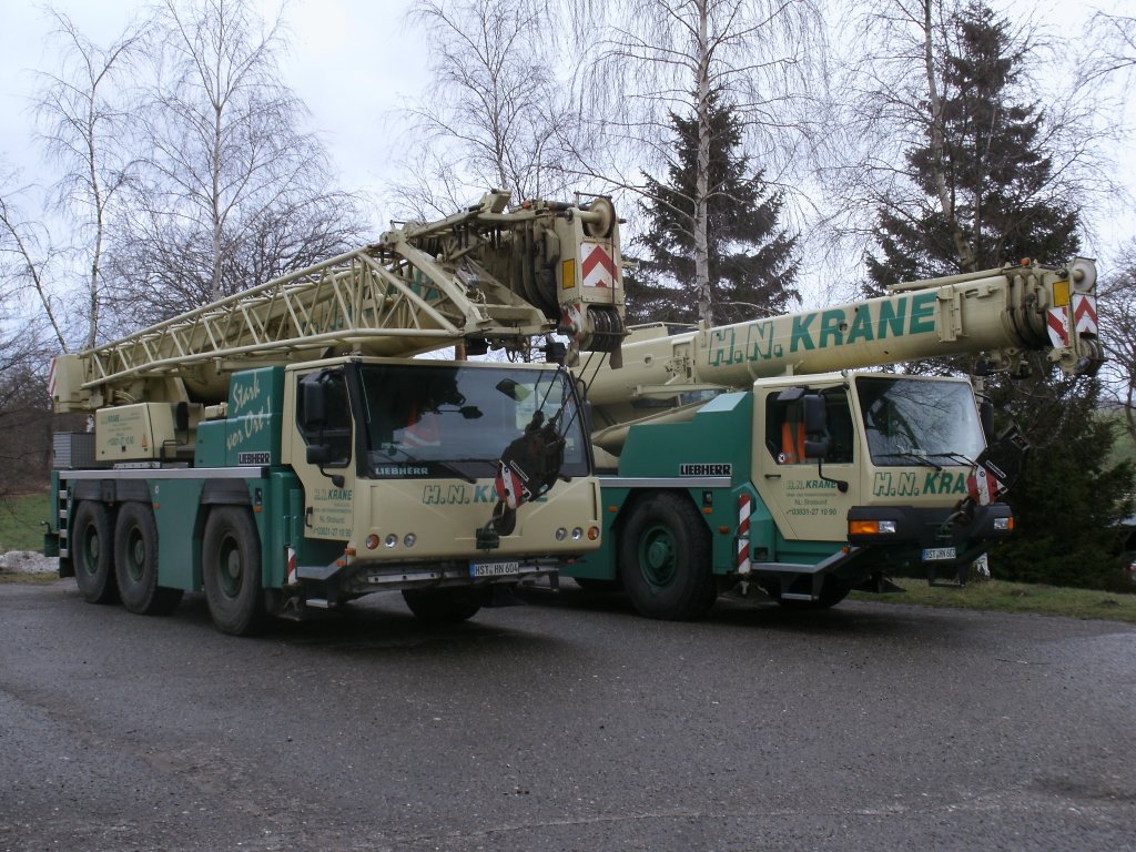 Zwei H.N.Autokräne standen,am 19.Februar 2012,in Bergen/Rügen.
