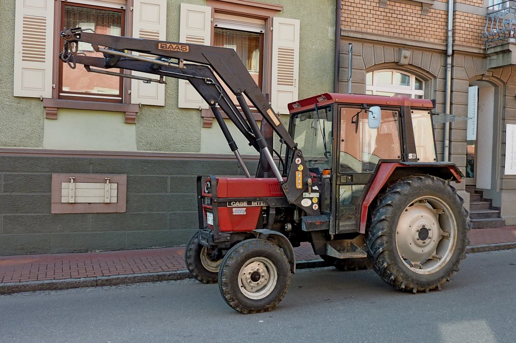 Case International 840 S3, mit hydraulischem Frontlader, 4-Zyl.Diesel mit 3911ccm und 67PS, wurde gebaut von 1990-93, März 2012