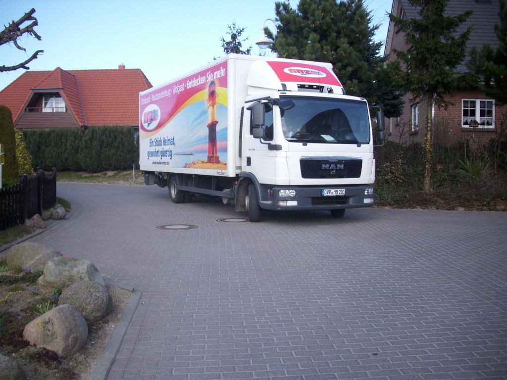 Auch in meiner Heimatstadt wird ein Schleckerladen geschlossen,dennoch gibt es in Bergen/Rügen noch zwei weitere Schleckerläden so das Dieser MAN-Hängerzug des öfteren in Bergen/Rügen zusehen ist.Aufnahme vom 29.März 2012.
