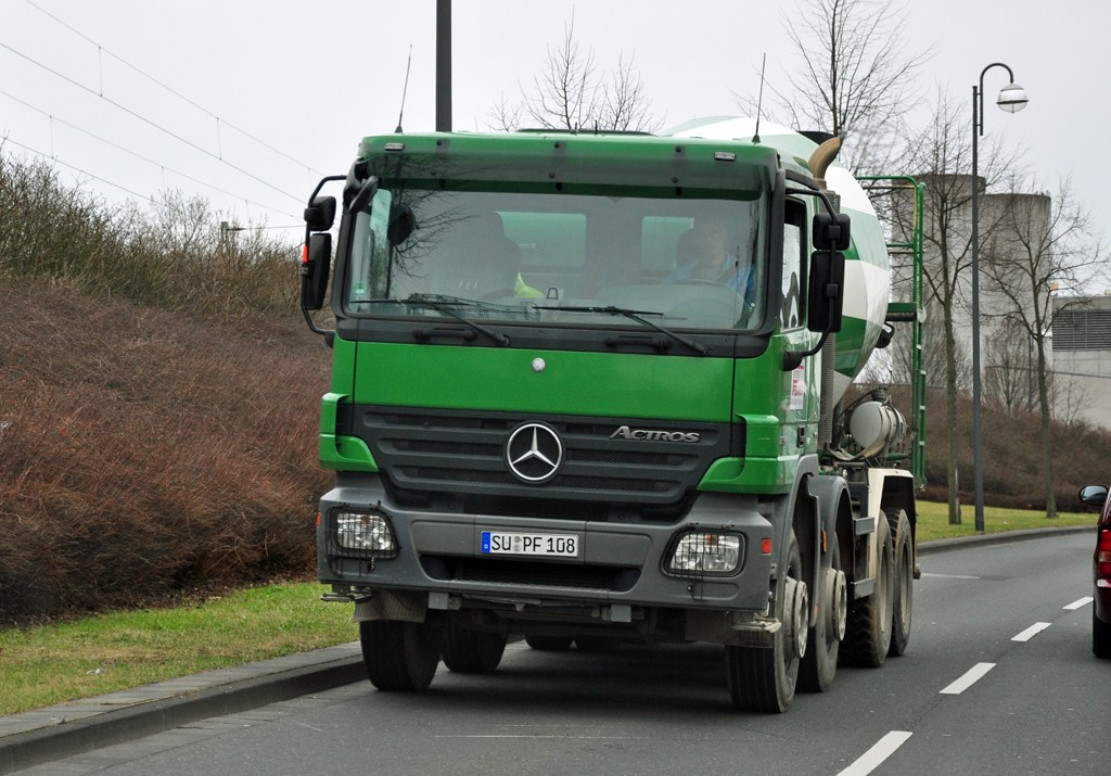MB Actros 1841 MP2 von "Sostmeier" steht nach erledigtem Service vor einer Mercedes-Werkstatt zur Abholung bereit, 19.02.2012