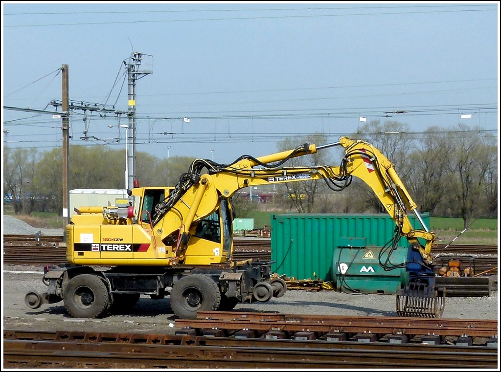 Zweiwegeradlader TEREX 1604ZW wartet an einer Bahnbaustelle auf seinen nächsten einsatz 24.03.2012.