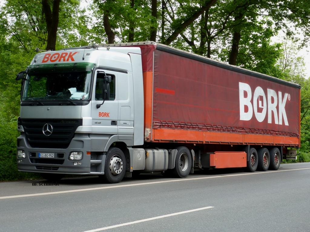 BORK Spedition ein MERCEDES BENZ Actros LH mit Pritschen Planen Sattelauflieger