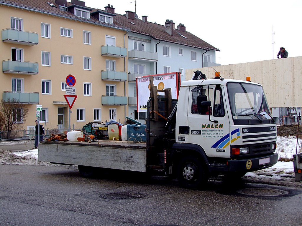 DAF-600 im Einsatz für einen Werbetafel-Montagetrupp; 120218