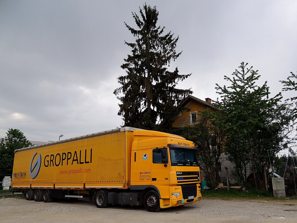 DAF XF95.480 von Rentrans verbringt die Wochenendruhe vor einem türkischem Lokal in Ried; 120505
