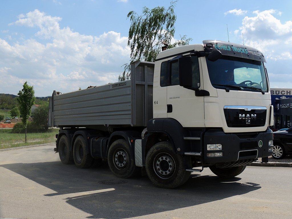 MAN TGS 35.440 transportiert eine Fuhre Erdaushub ab; 120504