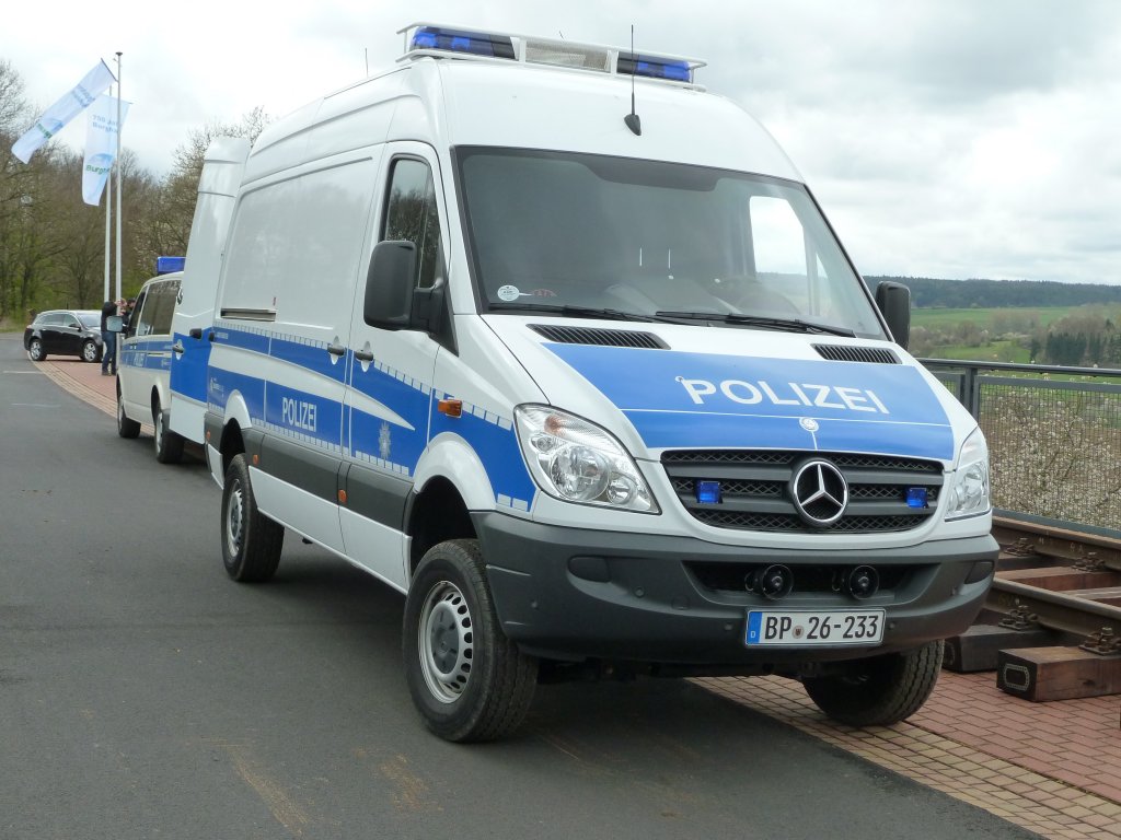 MB Sprinter der Bundespolizei steht auf der Klausmarbacher Brücke, April 2012