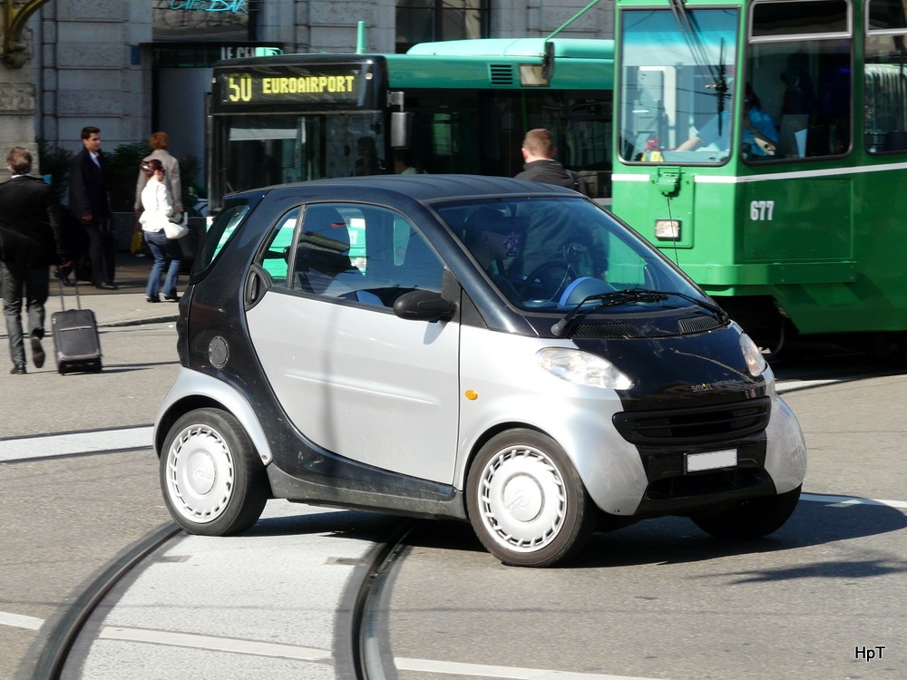 Silber - Schwarzer Smart unterwegs in der Stadt Basel am 04.05.2012
