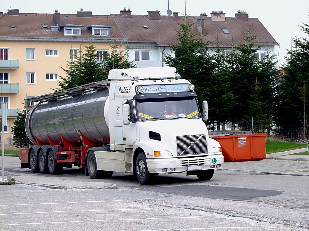 VOLVO Tanksattelzug von Fuchsluger ist mit einer Ladung Milch unterwegs; 120414