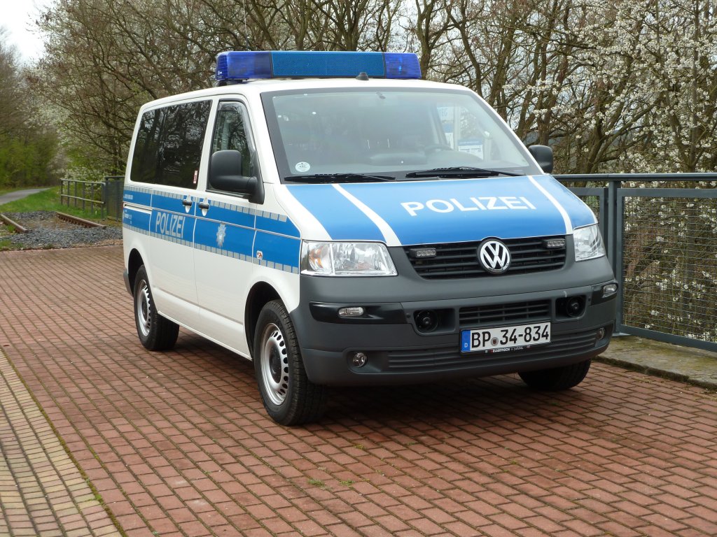 VW T5 der Bundespolizei steht auf der Klausmarbacher Brücke, April 2012