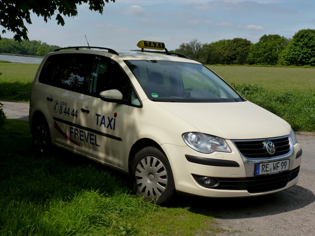 VW Touran als Taxi im Halbschatten an grünen Feldern geparkt 17.05.2012