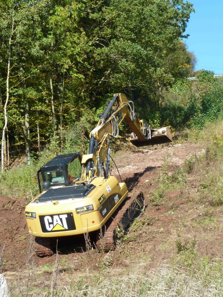 CAT 324D an einem Hangstück, bei Arbeiten an der Laugenleitungstrasse, in der Gemarkung von 36100 Petersberg-Marbach, Oktober 2012