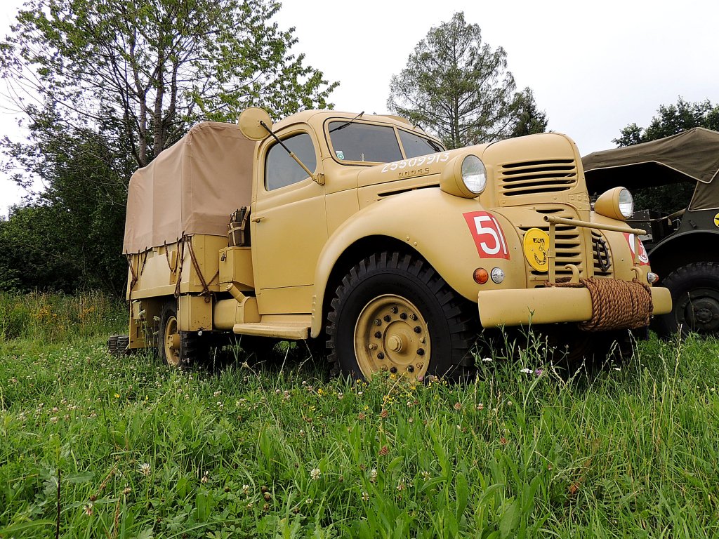 Der Farbe nach wohl ein ehemaliges Fahrzeug der Bundeswehr.