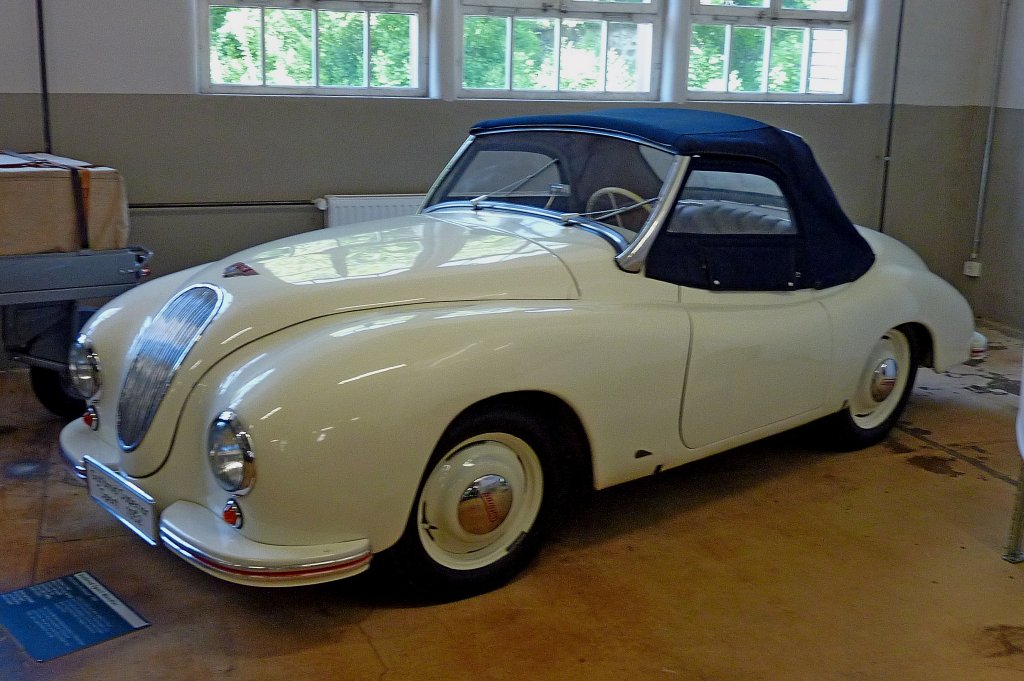 Gutbrod Superior Sport, das erste Serienauto der Welt mit Benzin-Einspritzung, Motor mit 593ccm und 27PS, Vmax 120Km/h, Baujahr 1952, die formschöne Alu-Karosserie stammt von Wendler aus Reutlingen, 10 Stück wurden gebaut, Automuseum Schramberg, Mai 2012