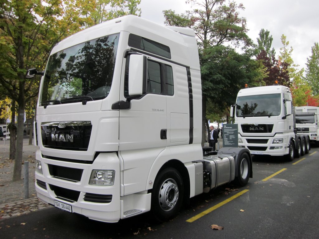 MAN TGX und MB Actros Sattelzüge auf der IAA Nutzfahrzeuge Hannover am 27.09.2012