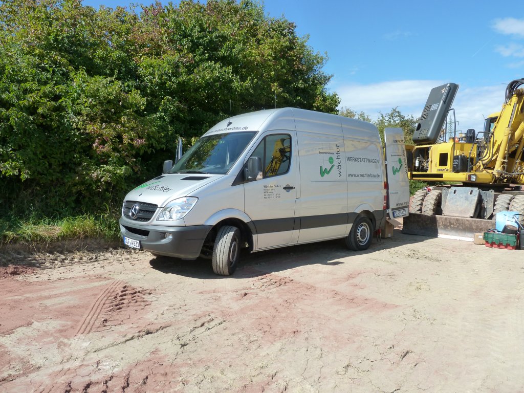 MB Sprinter als Servicefahrzeug von "Waechterbau" steht an der Laugenleitungsbaustelle in der Gemarkung von 36100 Petersberg-Marbach, September 2012