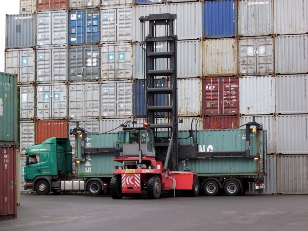 MAN TGS18.360 hat einen Absetzcontainer zur Müllentsorgung eines Flußkreuzfahrtschiffes bereitgestellt; 120827