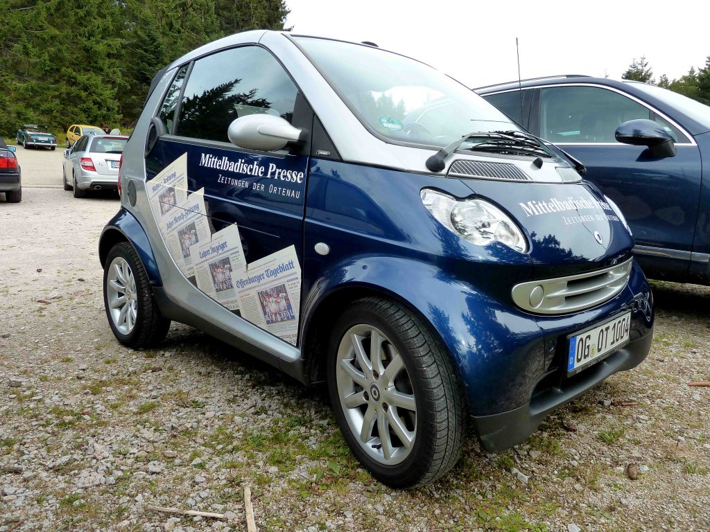 Smart als Werbeträger der Mittelbadischen Presse, gesehen im September 2012 an der Schwarzwaldhochstrasse