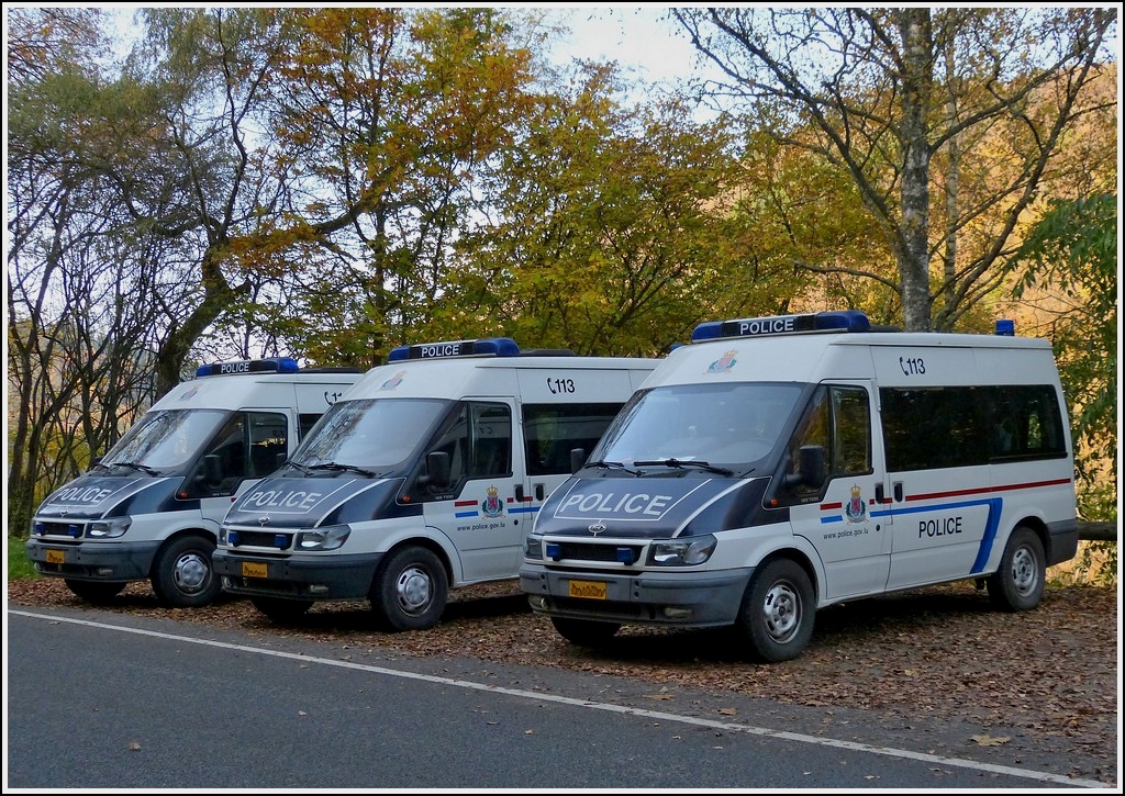 Diese 3 Ford Transit 125 T330, Manschaftswagen waren am 23.10.2012 auf einem Parkplatz abgestellt.