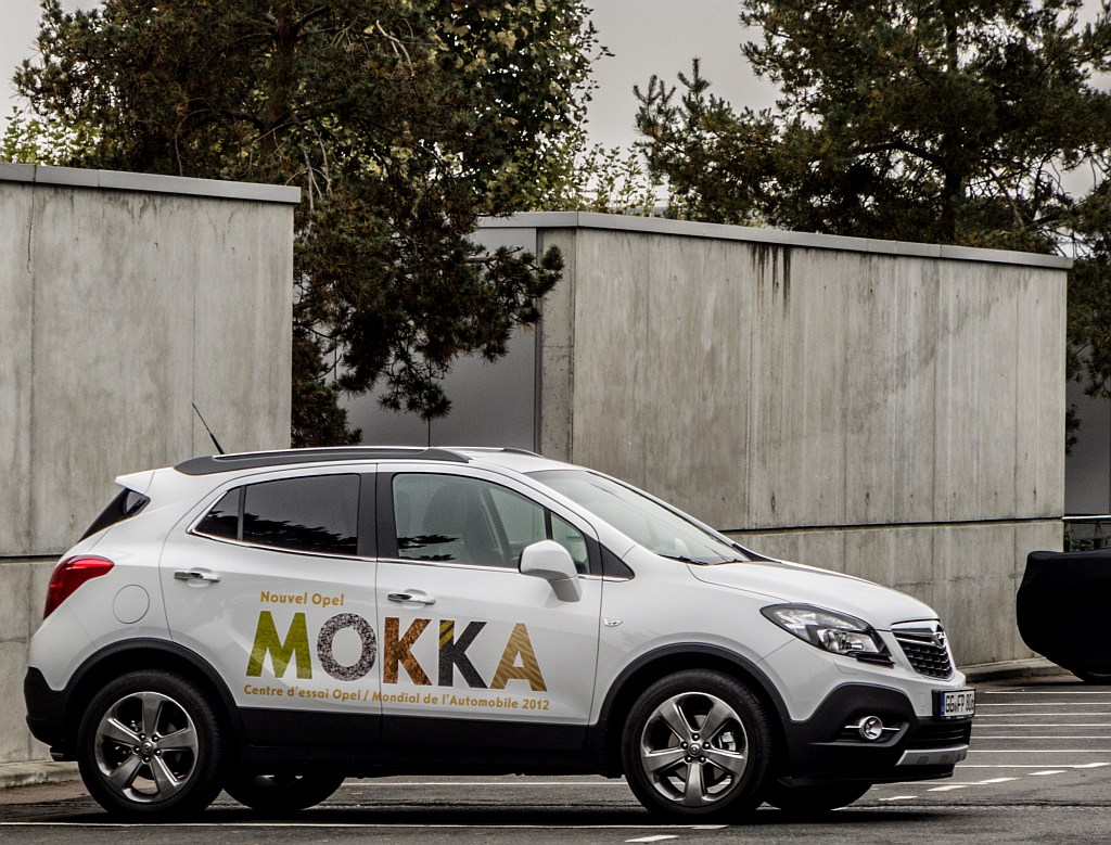 Dieser Opel Mokka fuhr zwischen den Pavilonen während des Automesse Paris (Foto: 11.10.2012)