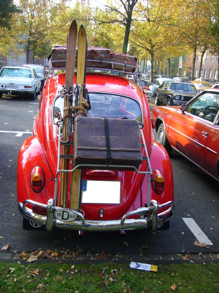 Es sieht so aus, als ob dieser 1966´er Käfer gleich mit seinem Besitzer/in, in den Skiurlaub aufbricht. Besucherparkplatz der Historicar Duisburg am 21.10.2012.