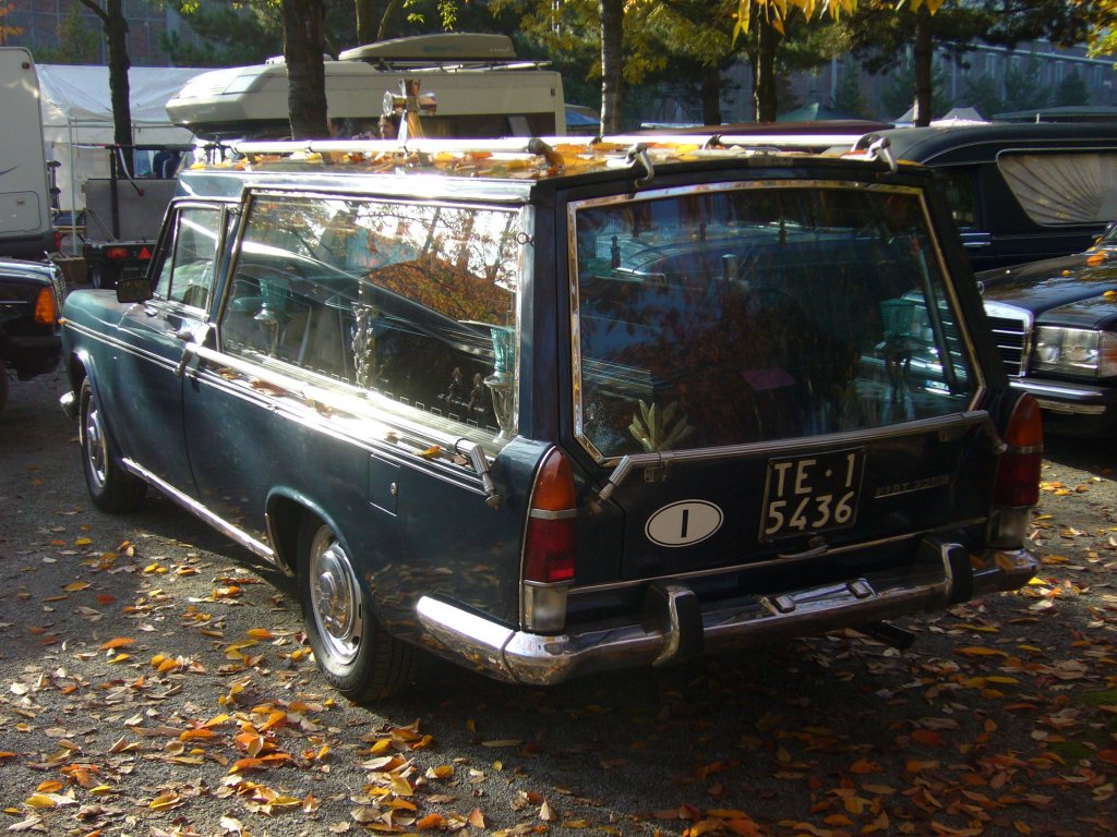 Fiat 2300. 1961 - 1968. Auf Basis eines 2300 Familiare wurde dieses Bestattungsfahrzeug von der Firma Pilato in Treviso/Venezien aufgebaut. Der 6-Zylinderreihenmotor leistet 105 PS aus 2.279 cm³ Hubraum. Der abgelichtete Wagen entstammt dem Baujahr 1965 und trägt eine Kennzeichen der Provinz Teramo in den Abruzzen. Historicar am 21.10.2012.
