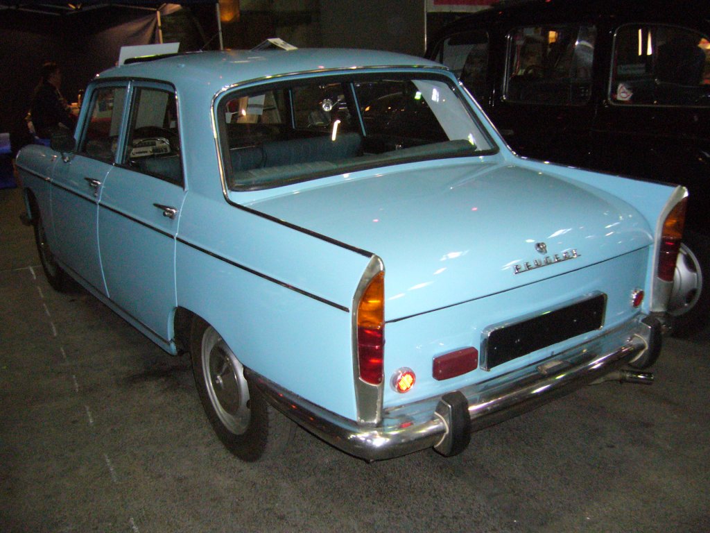 Heckansicht eines Peugeot 404. 1960 - 1975. Während seiner 15-jährigen Bauzeit war der 404 in etlichen Motorvarianten mit Benzin-und Dieselmotoren lieferbar. Aufgrund seiner Robustheit, wurde der Wagen nach Einstellung der Produktion in Sochaux, noch bis 1991 in einem Werk in Kenia weiterproduziert. Historicar Duisburg am 21.10.2012.