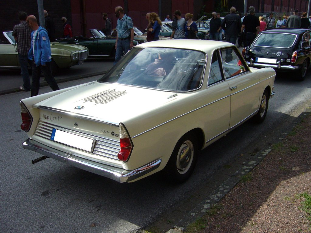 BMW LS Coupe. 1964 - 1965. Die BMW LS Modelle basierten auf dem BMW 700, hatten aber jedoch einen um 160 mm verlängerten Radstand. Die Fahrzeuglänge wuchs somit um 320 mm. Der 2-Zylinderboxermotor mit 697 cm³ Hubraum leistet 40 PS und beschleunigt das Coupe auf 135 km/h. Im Volksmund wurde der Wagen auch "Maurerporsche" genannt. Die Karosserien des 1.730 mal gebauten Autos wurden bei Baur in Stuttgart gepresst. Ein solches Coupe stand für DM 5.850,00 beim BMW-Händler. Oldtimertreffen Kokerei Zollverein am 02.09.2012.