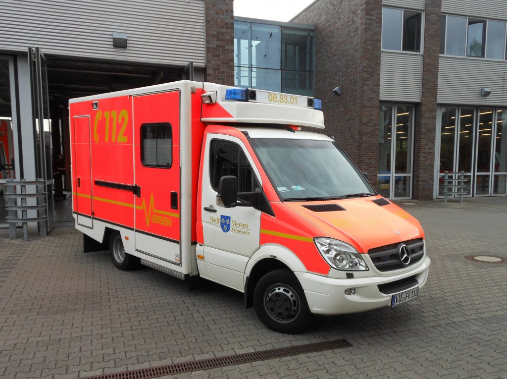 Erster Rettungswagen (RTW) der Feuerwehr-Rettungswache Viersen, auf Basis eines Mercedes-Benz Sprinter 518 CDI und dem medizinischen Kofferauf- und ausbau durch die Firma Fahrtec. Das Fahrzeug wird an der Feuer- und Rettungswache Viersen im 24-Stunden Betrieb eingesetzt. Fahrgestell: Mercdes-Benz Sprinter 518 CDI ("NCV3") Aufbau: Fahrtec Baujahr: 2007 In Viersen zwecks Foto Termin am 28.8.12 aufgenommen worden