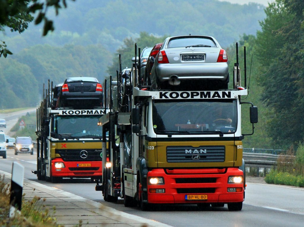 Volvo FM Autotransporter mit Tandemhänger am 11.09.2012 auf der A4 kurz vor der Niederländischen Grenze.