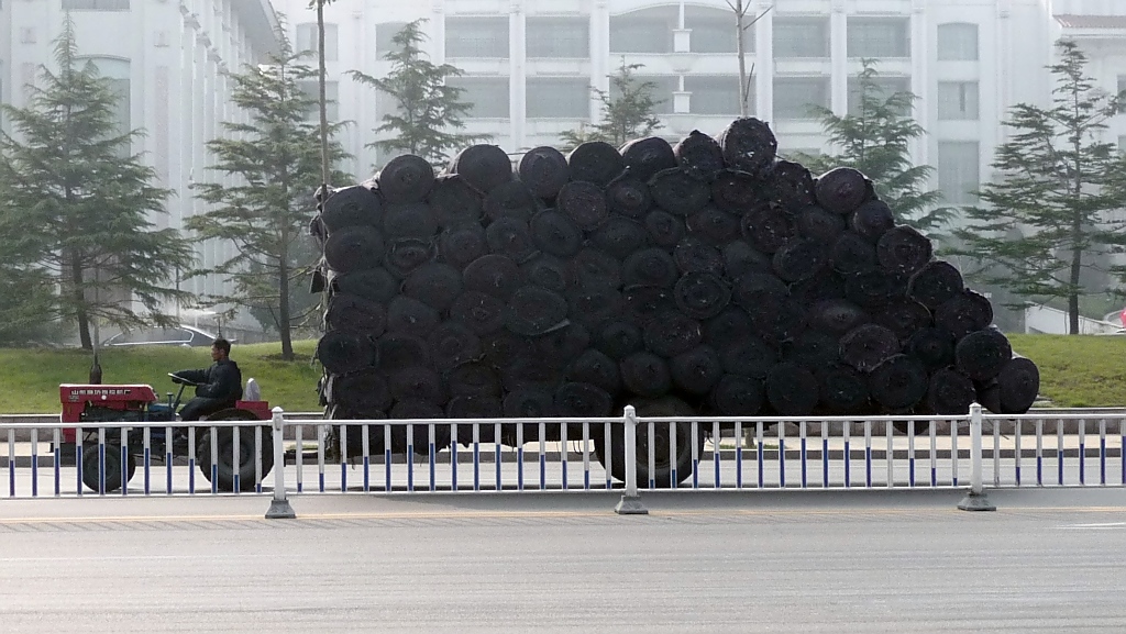 Überhaupt nicht überladener Anhänger an einem Traktor in Shouguang, 30.10.11