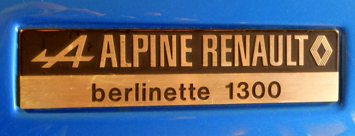 Alpine Renault, Schriftzug am Heck des Sportwagens "berlinetta 1300", die französische Sportwagenmarke bestand von 1955-95, Nov.2013
