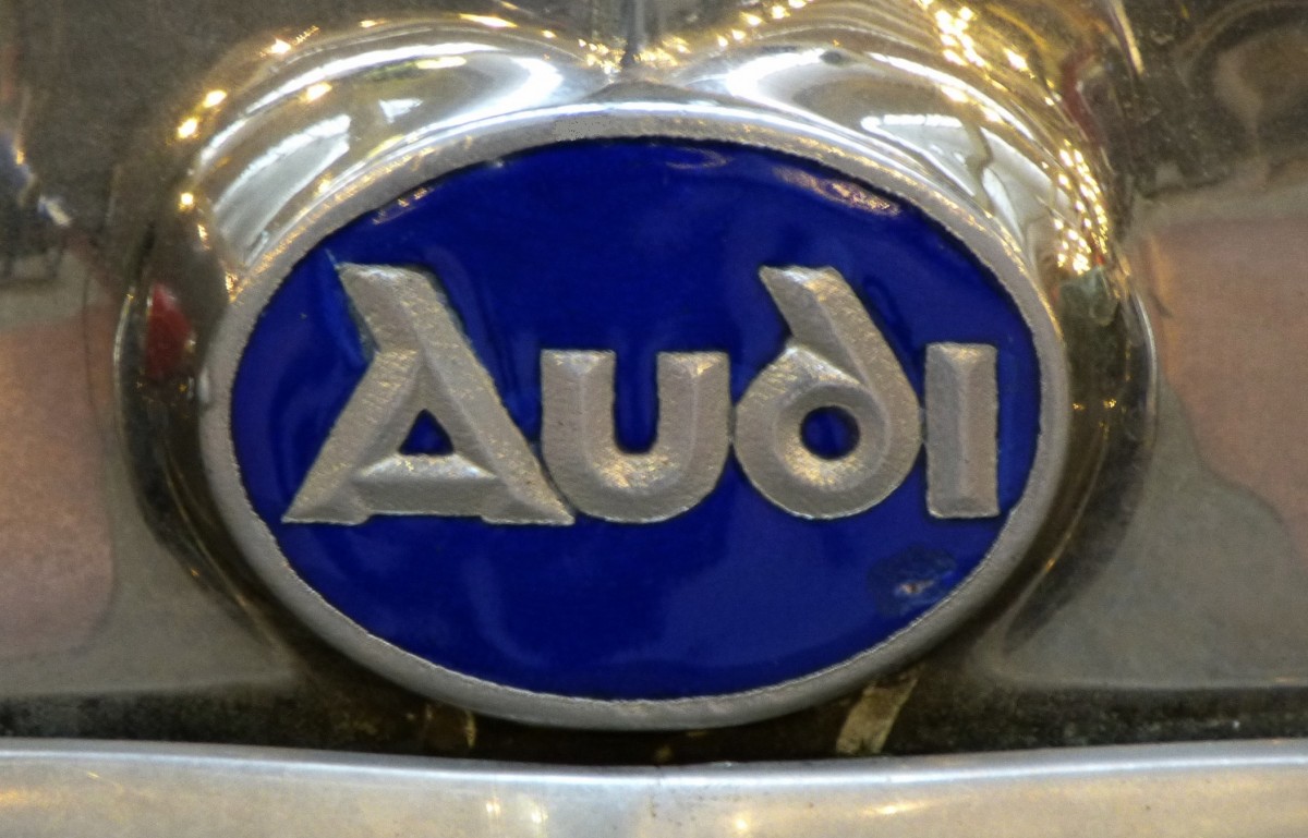 Audi, Logo an einem Oldtimer aus den 1930er Jahren, ist der lateinische Namen für "Horch!", Nov.2013