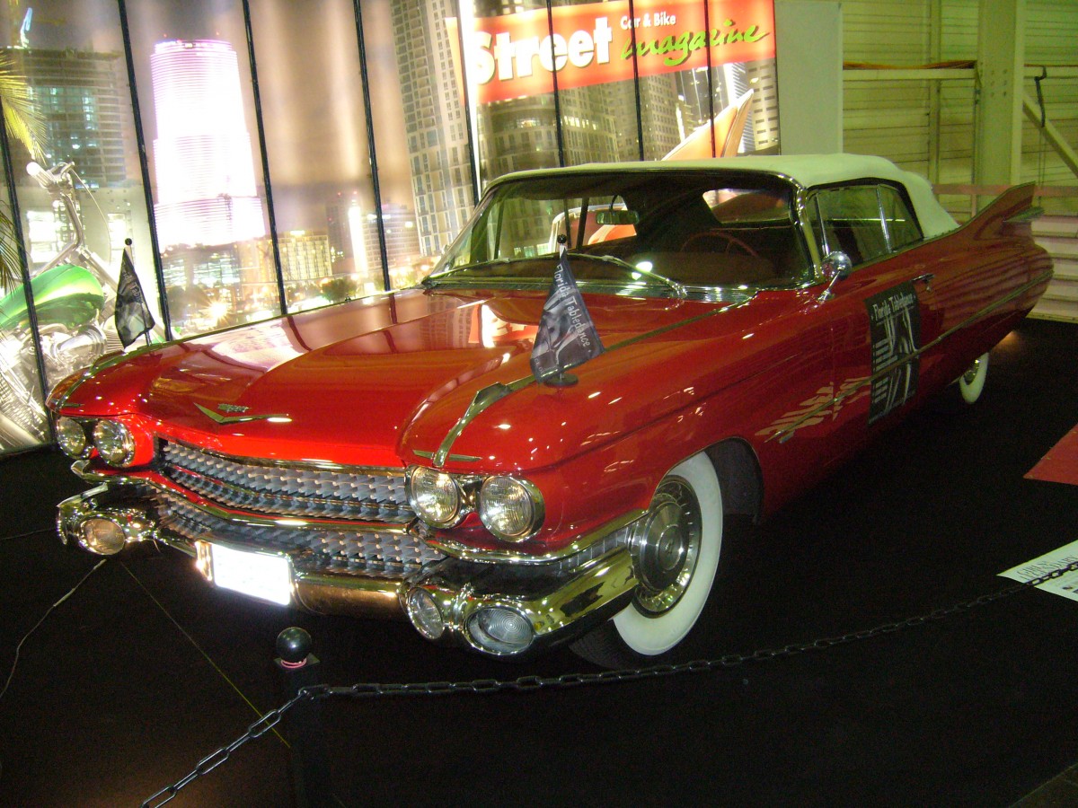 Cadillac Series 6200 Convertible Coupe des Jahrganges 1959. Von diesem US$ 5.455,00 teuren Modell verkaufte Cadillac im entsprechenden Modelljahr 11.130 Einheiten. Angetrieben wird der Wagen von einem V8-motor mit 6.388 cm³ Hubraum, der 325 PS leistet. Essen Motorshow am 05.12.2013.