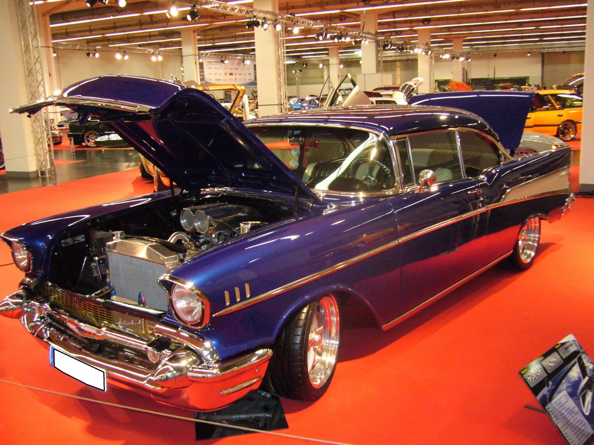 Chevrolet Bel Air Del Ray Hardtop Sport Coupe des Jahrganges 1957. Über die Stilikone fiftyseven-Chevy ist soviel geschrieben worden, dass sich hier jeder weitere Text erübrigt. Essen Motorshow am 05.12.2013.