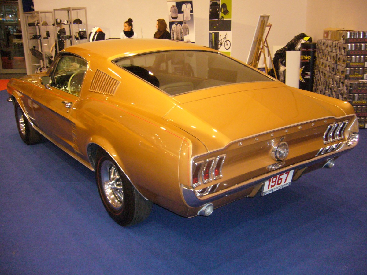 Heckansicht eines Ford Mustang Fastback des Jahrganges 1967. Essen Motorshow am 05.12.2013.