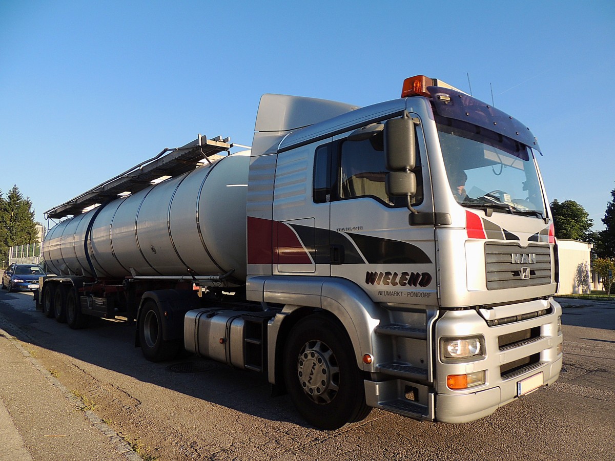 MAN TGA18.480 von Wielend, transportiert im Auflieger eine Ladung Milch; 130816