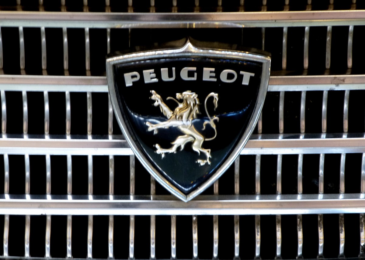 Peugeot, Logo im Kühlergrill eines Oldtimers von 1961, Nov.2013