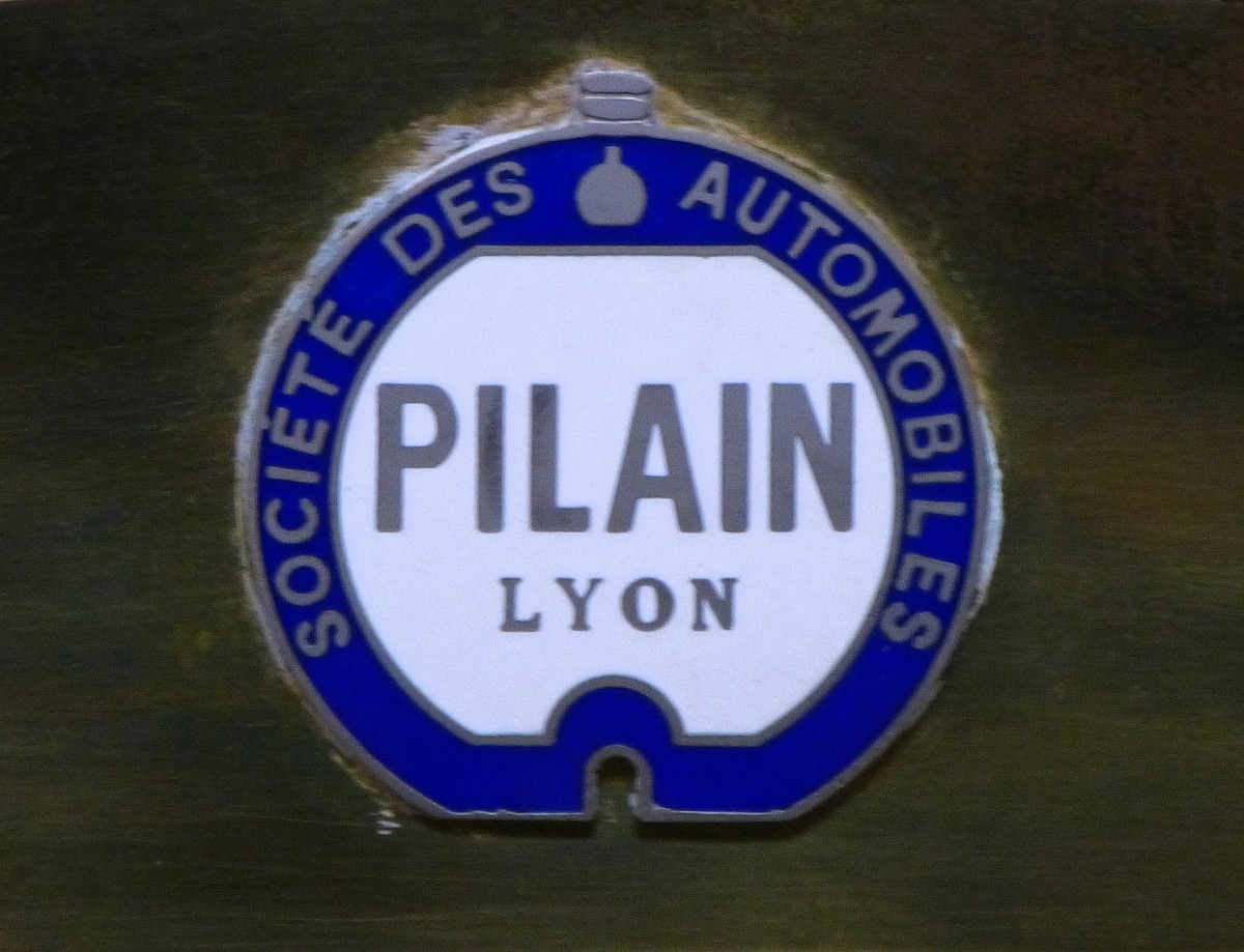 Pilain, Initialen der französischen Autofirma am Kühlergrill eines Oldtimers von 1911, Dez.2013