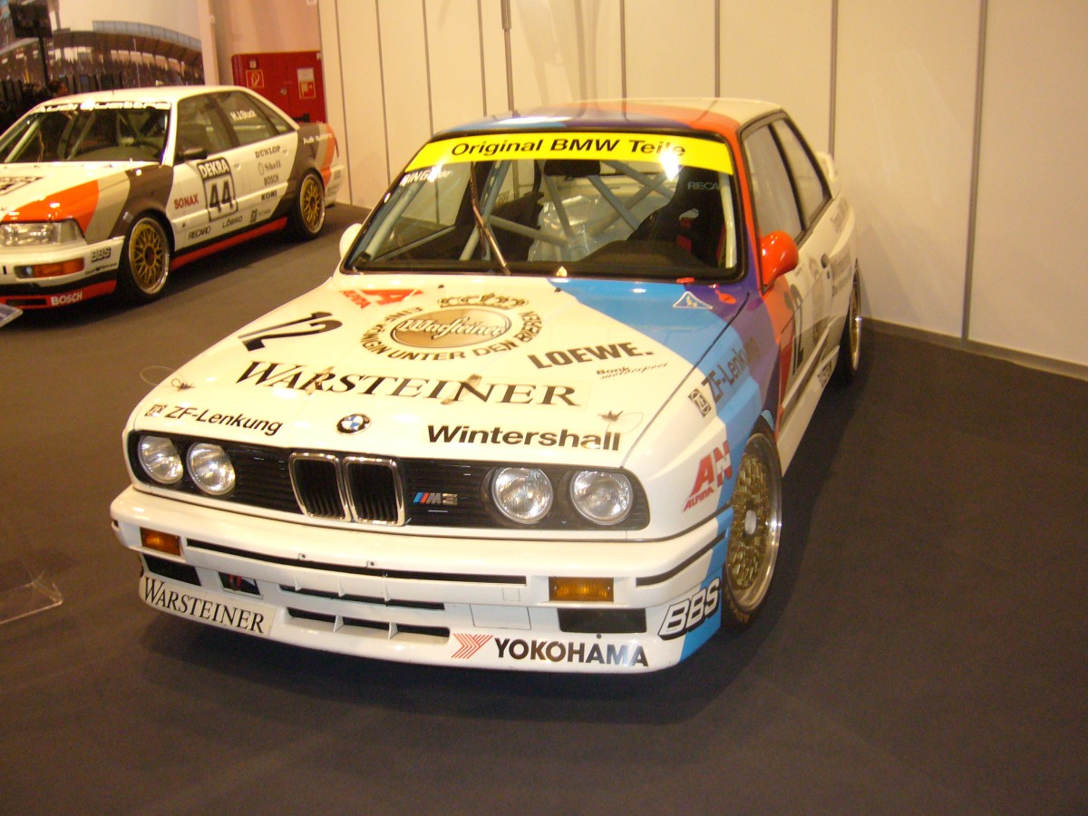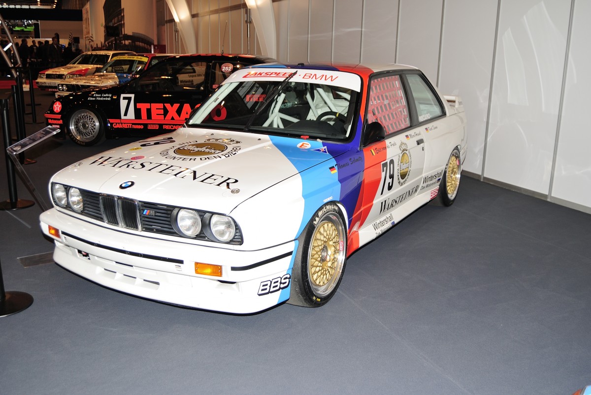 Schnitzer BMW M3 Evolution. Mit diesem M3 gewann der Venezianer Roberto Ravaglia in der DTM-Saison 1989 die Meisterschaft. Der 4-Zylinderreihenmotor leistet 320 PS aus 2.332 cm³ Hubraum. Essen Motorshow am 05.12.2013.